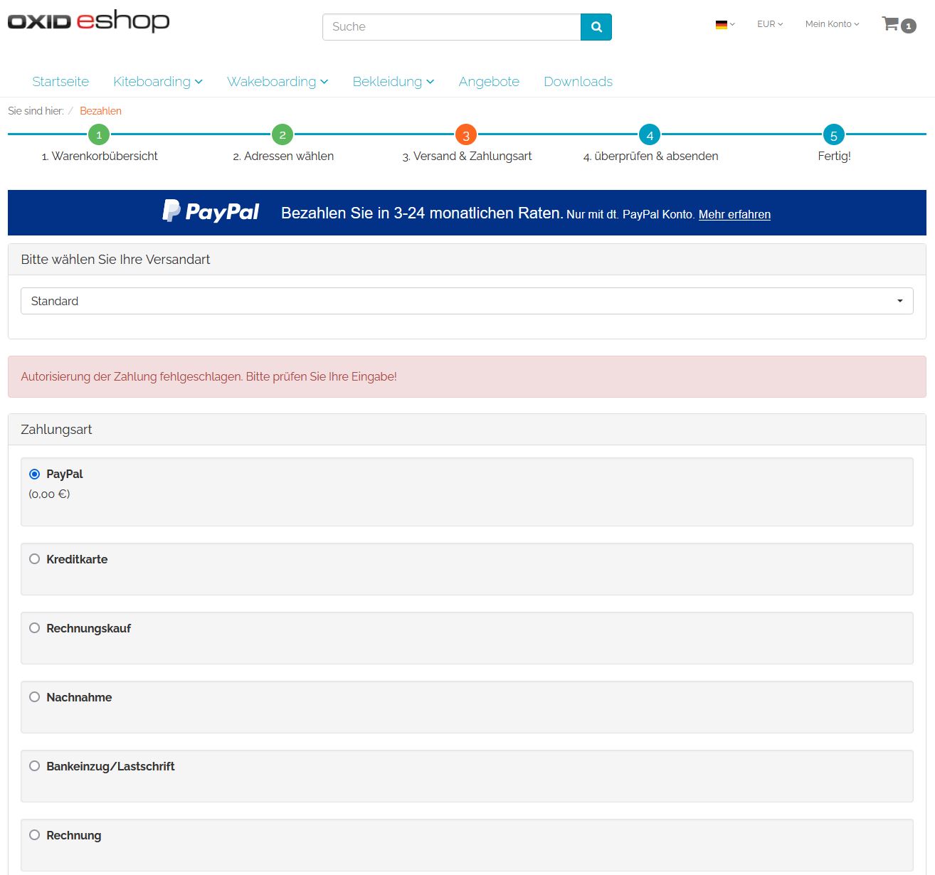 | Additional Information | [2023-03-23 14:26:45] OXID Logger.ERROR: Api error on order create call. CANNOT_BE_NEGATIVE ["[object] (OxidSolutionCatalysts\\PayPalApi\\Exception\\ApiException(code: 422): POST https://api.sandbox.paypal.com/v2/checkout/orders returned: 422 Unprocessable Entity\nReturned Message: The requested action could not be performed, semantically incorrect, or failed business validation.\nError Details: \n[{\"field\":\"\\/purchase_units\\/@reference_id=='OXID_REFERENCE'\\/amount\\/breakdown\\/discount\\/value\",\"value\":\"-399.50\",\"issue\":\"CANNOT_BE_NEGATIVE\",\"description\":\"Must be greater than or equal to 0. If the currency supports decimals, only two decimal place precision is supported.\"}]\n\nResponse: \n{\"name\":\"UNPROCESSABLE_ENTITY\",\"debug_id\":\"fed9bc8b5b5fa\",\"links\":[{\"href\":\"https:\\/\\/developer.paypal.com\\/docs\\/api\\/orders\\/v2\\/#error-CANNOT_BE_NEGATIVE\",\"rel\":\"information_link\",\"method\":\"GET\"}]}\n\nThe following curl request could be used to simulate a similar request:\n \ncurl -v -X POST \"https://api.sandbox.paypal.com/v2/checkout/orders\" -H \"User-Agent: GuzzleHttp/7\" -H \"Host: api.sandbox.paypal.com\" -H \"Content-Type: application/json\" -H \"PayPal-Partner-Attribution-Id: \" -H \"PayPal-Client-Metadata-Id: \" -H \"Prefer: return=minimal\" -H \"Authorization: Bearer A21AAJ1x6t1ovly1_q0fV-7uaDidBH0EBCMI-ttKnieO00H-Pdn4ZinXGKzKwj0B7KNkMEhq169W3ctaEITym_rpK0OQisEbg\" -d {\"intent\":\"CAPTURE\",\"processing_instruction\":\"NO_INSTRUCTION\",\"payer\":{\"email_address\":\"[email protected]\",\"name\":{\"given_name\":\"s\",\"surname\":\"g\"},\"address\":{\"address_line_1\":\"Bertholdstra\\u00dfe 48\",\"address_line_2\":\" \",\"admin_area_2\":\"Freiburg\",\"postal_code\":\"79199\",\"country_code\":\"DE\"}},\"purchase_units\":[{\"reference_id\":\"OXID_REFERENCE\",\"amount\":{\"currency_code\":\"EUR\",\"value\":\"1200.50\",\"breakdown\":{\"item_total\":{\"currency_code\":\"EUR\",\"value\":\"801.00\"},\"tax_total\":{\"currency_code\":\"EUR\",\"value\":\"0.00\"},\"discount\":{\"currency_code\":\"EUR\",\"value\":\"-399.50\"}}},\"description\":\"Zahlung bei OXID eShop 6\",\"shipping\":{\"name\":{\"full_name\":\"s g\"},\"address\":{\"address_line_1\":\"Bertholdstra\\u00dfe 48\",\"address_line_2\":\" \",\"admin_area_2\":\"Freiburg\",\"postal_code\":\"79199\",\"country_code\":\"DE\"}}}],\"application_context\":{\"brand_name\":\"OXID eShop 6\",\"landing_page\":\"LOGIN\",\"shipping_preference\":\"SET_PROVIDED_ADDRESS\",\"user_action\":\"CONTINUE\",\"vault\":false}} at /var/www/oxideshop/vendor/oxid-solution-catalysts/paypal-client/src/Service/BaseService.php:45)\n[stacktrace]\n#0 /var/www/oxideshop/vendor/oxid-solution-catalysts/paypal-client/generated/Service/Orders.php(55): OxidSolutionCatalysts\\PayPalApi\\Service\\BaseService->send('POST', '/orders', Array, Array, '{\"intent\":\"CAPT...')\n#1 /var/www/oxideshop/vendor/oxid-solution-catalysts/paypal-module/src/Service/Payment.php(142): OxidSolutionCatalysts\\PayPalApi\\Service\\Orders->createOrder(Object(OxidSolutionCatalysts\\PayPalApi\\Model\\Orders\\OrderRequest), '', '', 'return=minimal', '')\n#2 /var/www/oxideshop/vendor/oxid-solution-catalysts/paypal-module/src/Service/Payment.php(177): OxidSolutionCatalysts\\PayPal\\Service\\Payment->doCreatePayPalOrder(Object(OxidSolutionCatalysts\\PayPal\\Model\\Basket), 'CAPTURE', 'CONTINUE', NULL, NULL, '', '', '', NULL, NULL, false)\n#3 /var/www/oxideshop/vendor/oxid-solution-catalysts/paypal-module/src/Controller/OrderController.php(149): OxidSolutionCatalysts\\PayPal\\Service\\Payment->doCreatePatchedOrder(Object(OxidSolutionCatalysts\\PayPal\\Model\\Basket))\n#4 /var/www/oxideshop/vendor/oxid-esales/oxideshop-ce/source/Core/Controller/BaseController.php(534): OxidSolutionCatalysts\\PayPal\\Controller\\OrderController->createAcdcOrder()\n#5 /var/www/oxideshop/vendor/oxid-esales/oxideshop-ee/Core/Controller/BaseController.php(64): OxidEsales\\EshopCommunity\\Core\\Controller\\BaseController->executeFunction('createAcdcOrder')\n#6 /var/www/oxideshop/vendor/oxid-esales/oxideshop-ce/source/Core/ShopControl.php(347): OxidEsales\\EshopEnterprise\\Core\\Controller\\BaseController->executeFunction('createAcdcOrder')\n#7 /var/www/oxideshop/vendor/oxid-esales/oxideshop-ce/source/Core/ShopControl.php(280): OxidEsales\\EshopCommunity\\Core\\ShopControl->executeAction(Object(OxidSolutionCatalysts\\PayPal\\Controller\\OrderController), 'createAcdcOrder')\n#8 /var/www/oxideshop/vendor/oxid-esales/oxideshop-ce/source/Core/ShopControl.php(142): OxidEsales\\EshopCommunity\\Core\\ShopControl->_process('OxidEsales\\\\Esho...', 'createAcdcOrder', NULL, NULL)\n#9 /var/www/oxideshop/vendor/oxid-esales/oxideshop-ce/source/Core/Oxid.php(27): OxidEsales\\EshopCommunity\\Core\\ShopControl->start()\n#10 /var/www/oxideshop/source/index.php(16): OxidEsales\\EshopCommunity\\Core\\Oxid::run()\n#11 {main}\n"] [] | ||||