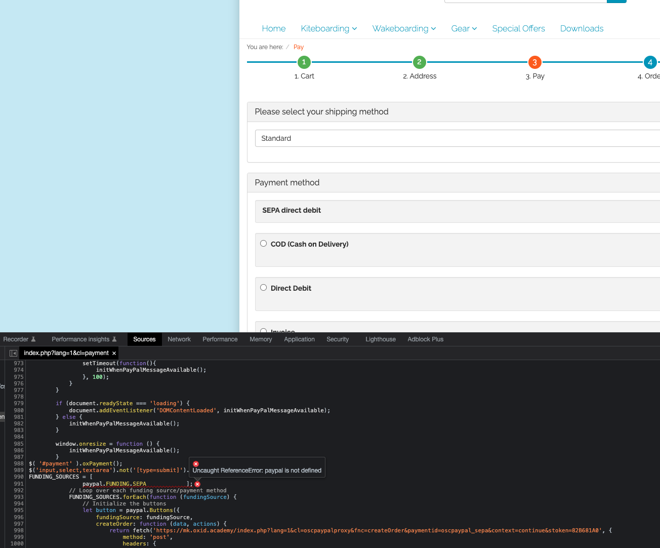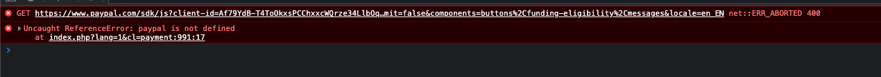 | Additional Information | index.php?lang=1&cl=payment:991 Uncaught ReferenceError: paypal is not defined