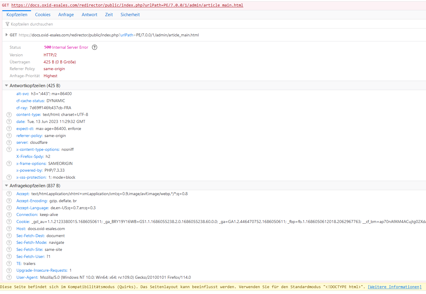 | Description | The administration provides linkings to our Online Documentation in the footer of different pages. Clicking on the link opens a new window with the Online Documentation. Apparently something broke on the Online Documentation platform, since the window still opens (OXID eShop Administration works), but an error 500 is displayed. The freshly opened window points to an URL of the Online Documentation: https://docs.oxid-esales.com/redirector/public/index.php?urlPath=PE/7.0.0/1/admin/article_main.html | ||||