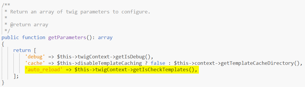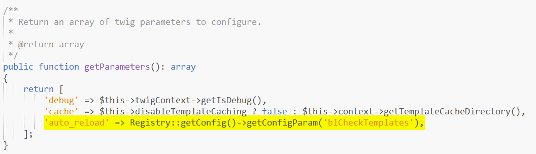 | Additional Information | Twig has similar to smarty's "compile_check" the option "auto_reload" which could be triggered by the config entry. https://twig.symfony.com/doc/3.x/api.html | ||||