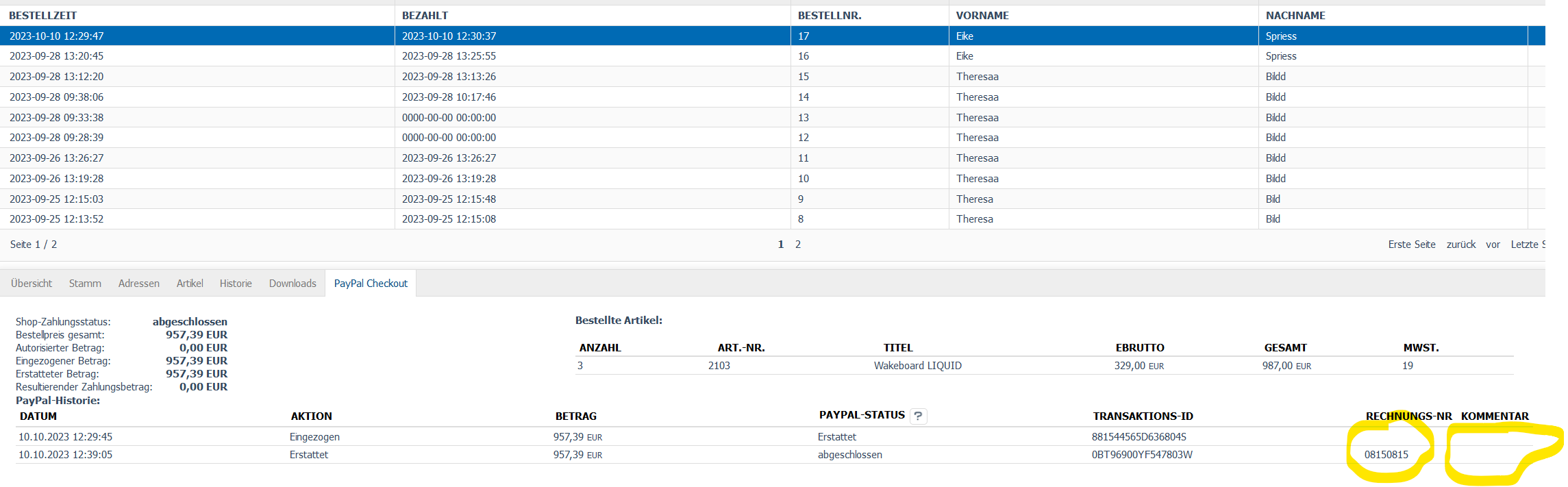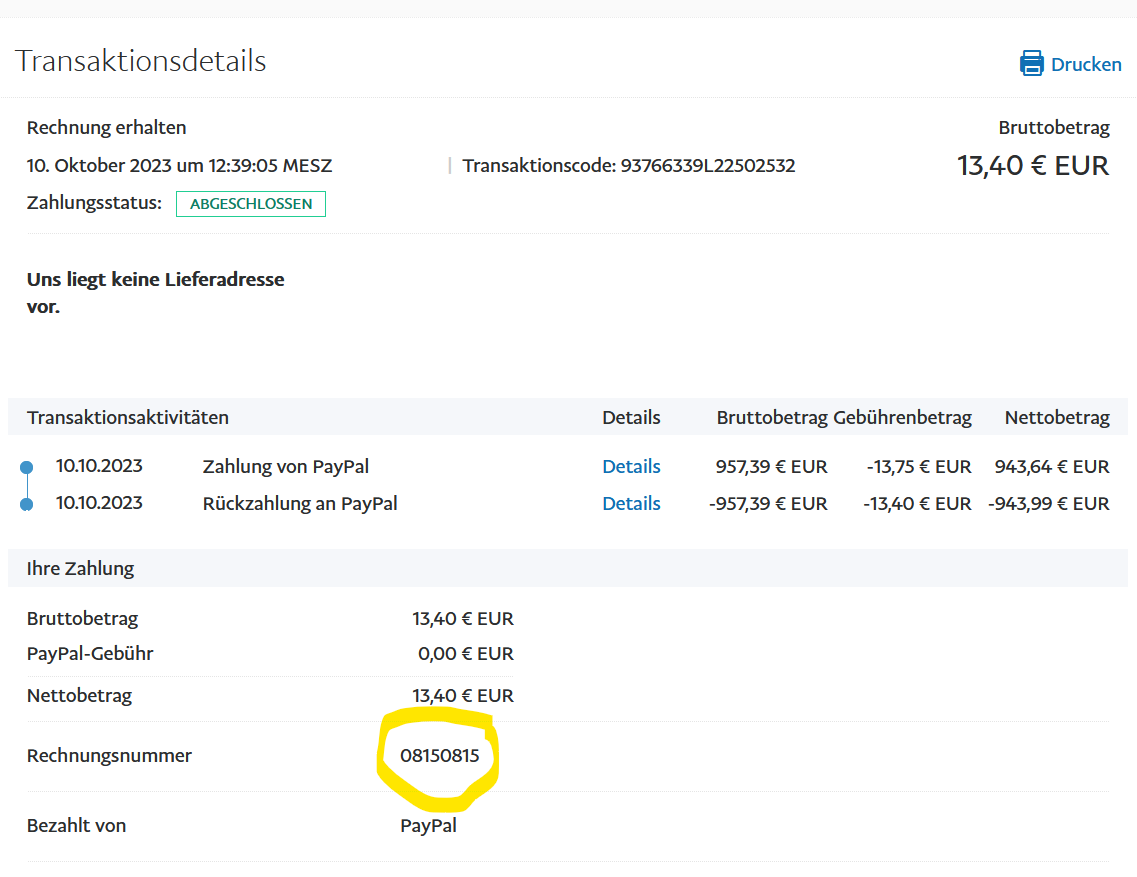 | Description | The optional fields "Invoice no." and "Note to buyer" are fields that are not stored in the OXID database, but should be added to the transaction at PayPal. The invoice number works for me, but the buyer's note is not transmitted. See attached picures. Tested in OXID 6.5.3 with PayPal Checkout v2.3.2-rc.3 | ||||