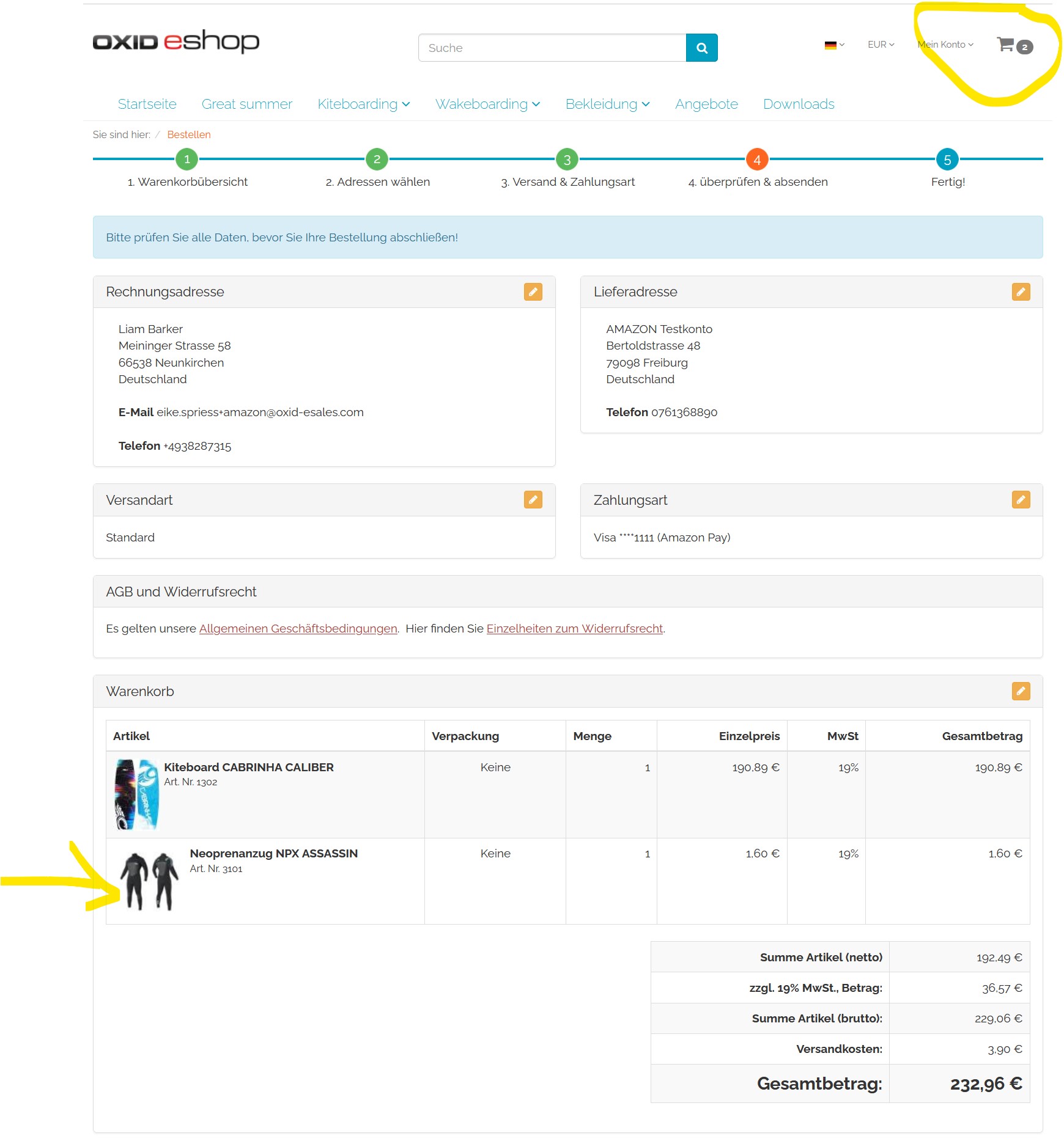 | Description | If you call up the Minibasket (Flyout) on the detail page and click on the Amazon Express button, you have to log in to Amazon. If you will be redirected back in Order Step4 (/index.php?cl=order), the item from the detail page is also included in addition to the items in the shopping basket. If you select AmazonPay Express from the shopping basket Step 1 (/index.php?cl=basket), the problem does not occur. | ||||
