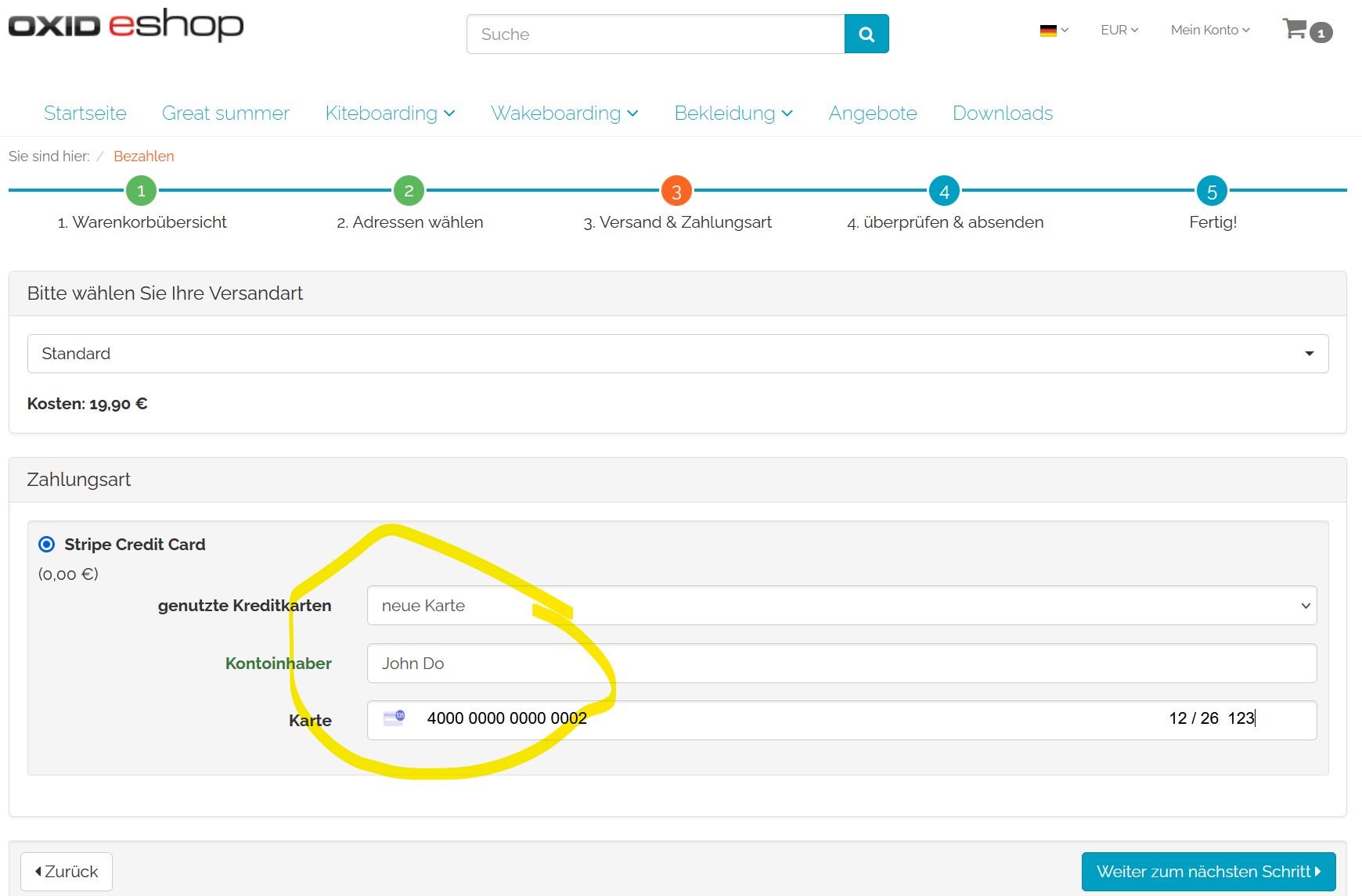 | Steps To Reproduce | 1. Add article to basket 2. Login (Step2) 3. Select Stripe Credit Card-> New Card 4. Enter Declined Credit Card Data (see Screenshot) 5. Payment page will be reloaded without error message (see Screenshot) | ||||