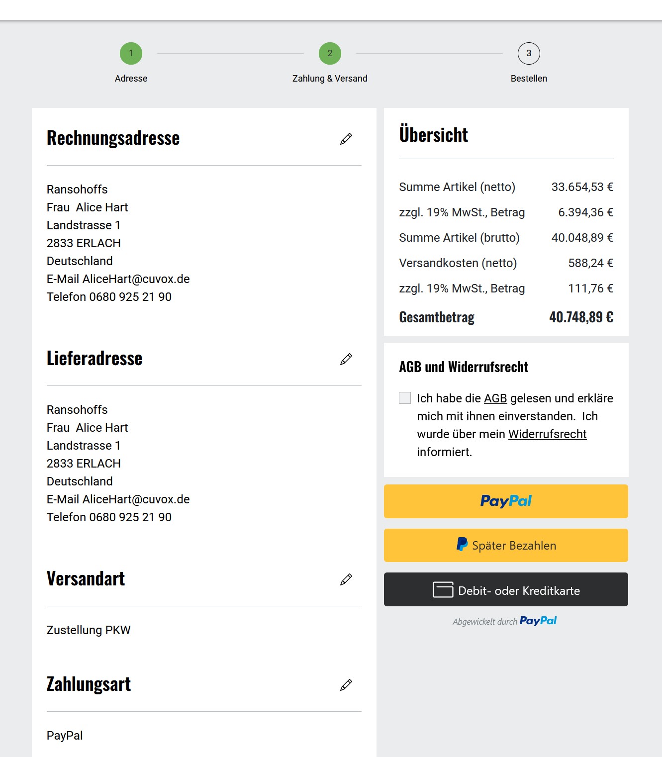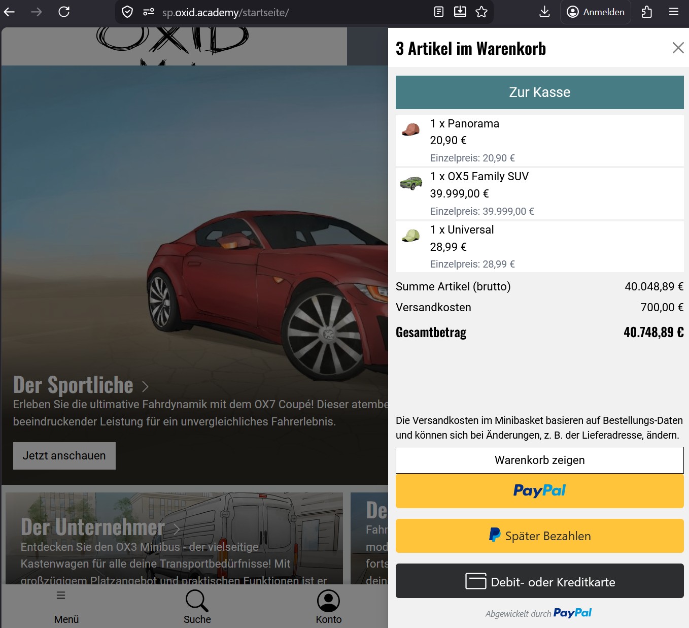 | Description | In the sub-shop, the fallback credit card is displayed even though the payment methods (PayPal credit or debit card and PayPal credit or debit card fallback) are not active. However, this only happens if ‘Vaulting: No’ is also set. /var/configuration/shops/1/modules/osc_paypal.yaml oscPayPalSandboxVaultingEligibility: type: bool value: false | ||||
