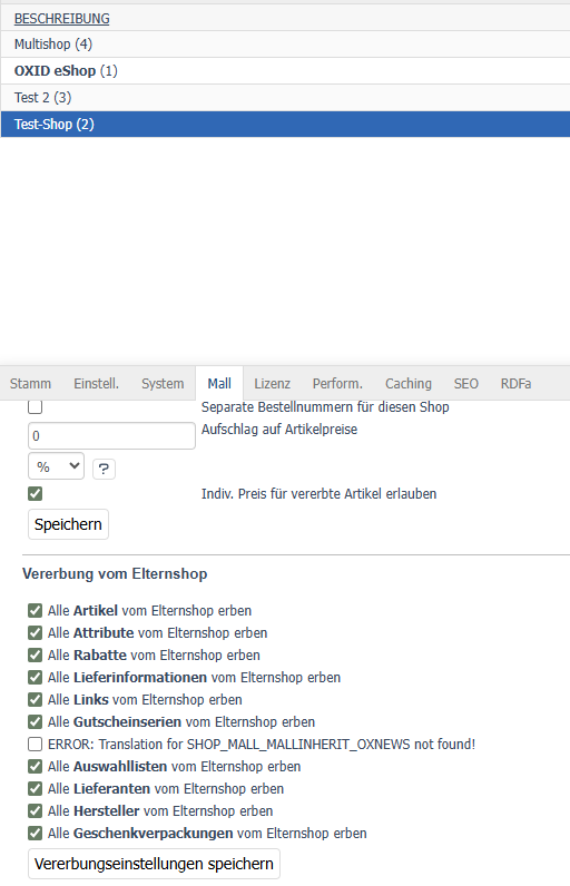 | Description | Translation error "SHOP_MALL_MALLINHERIT_OXNEWS" in the Mall tab of the subshop. The label text for the news inheritance option is missing here. The same error since version 7.4. | ||||