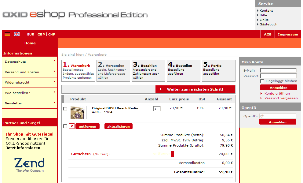 | 0000943 | OXID eShop (all versions) | 1.02. Price calculations (discounts, coupons, additional costs etc.) | public | 2009-05-27 09:57 | 2015-05-04 14:15 |