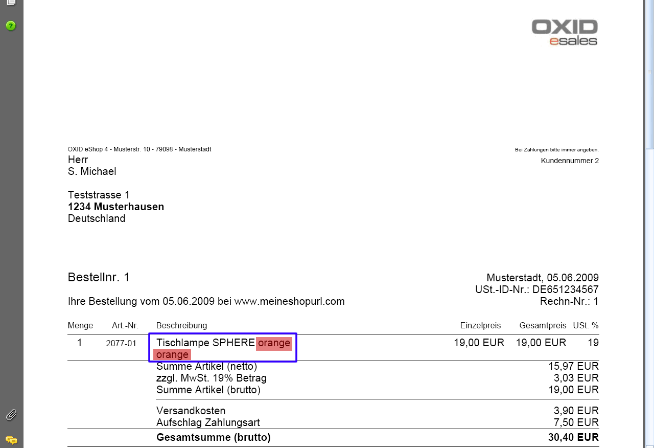| Description | See the screen shots attached: The name for the selection of the variants appears duplicated in order listing and on the PDF invoice | ||||